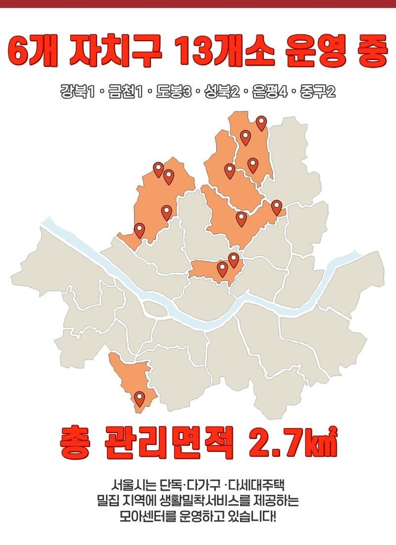 서울시는 현재 6개 자치구 13개소에서 운영 중인 모아센터를 올해 28개소로 두 배 이상 늘려 저층 주거지의 고질적인 관리 공백을 메우겠다고 23일 밝혔다.