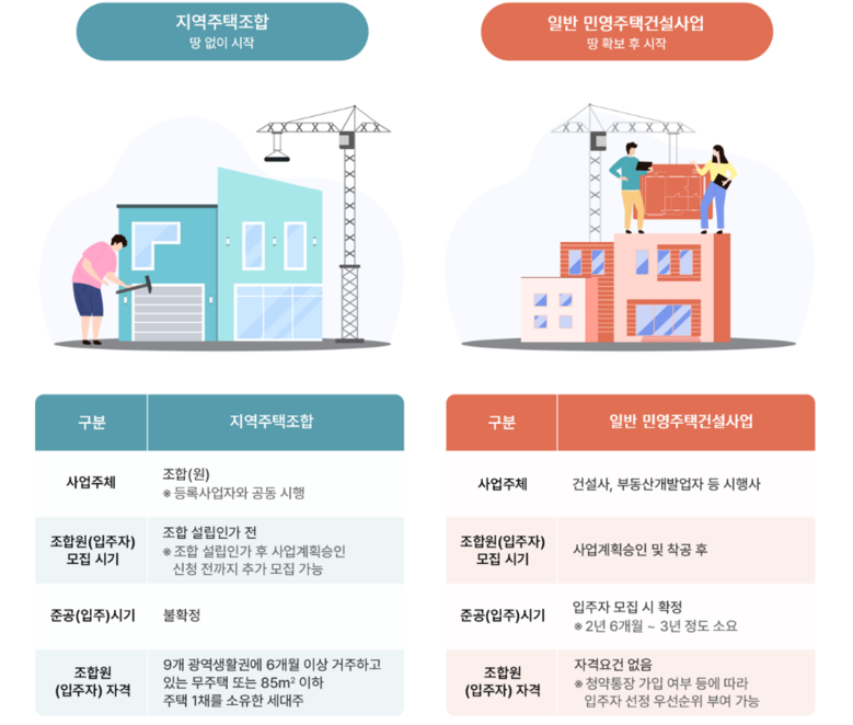 | ▲지역주택조합과 일반 정비사업(재개발·재건축)의 차이점 / 서울시 제공 |