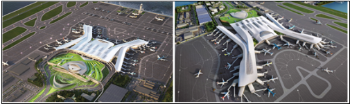 | ▲가덕신공항 여객터미널 국제설계공모 1등 당선작인 ㈜희림종합건축사사무소 협력체의 '라이징 윙스(Rising Wings)'. 사진=국토부 제공 |