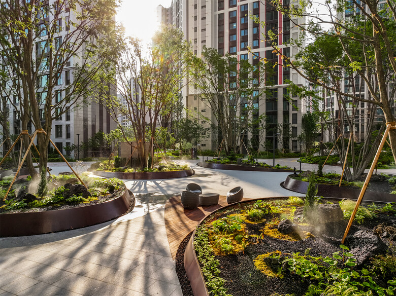 힐스테이트 푸르지오 주안의 숲속 휴게공간인 ‘H가든 라운지(H Garden Lounge)’도 우수디자인상품으로 선정됐다. 생태학적으로 극상림을 이루는 대형 서어나무를 모던한 디자인의 플랜터 위에 식재해 편안한 휴식 가운데 깊은 숲속의 새벽녘 풍경을 떠올리는 원초적 경험을 제안하고 있다.