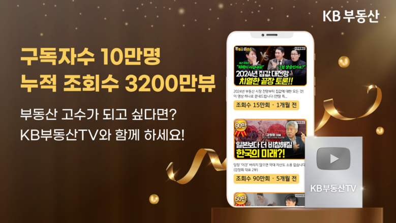 KB국민은행의 부동산 전문 플랫폼 ‘KB부동산’이 운영하는 유튜브 채널 ‘KB부동산TV’가 구독자 수 10만 명을 돌파했다.