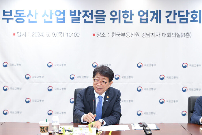 그는 "국민들의 부동산 이용을 고도화하고 시장을 투명화하는데 노력을 기울여 국가 경제발전에 기여와 국민 생활환경 개선, 정당한 자산형성 지원이라는 궁극적 가치를 실현하겠다"며 "앞으로도 정부와 부동산 업계가 소통하는 자리를 수시로 만들어 여러분의 의견을 정책에 반영할 수 있도록 하겠다"고 말했다.