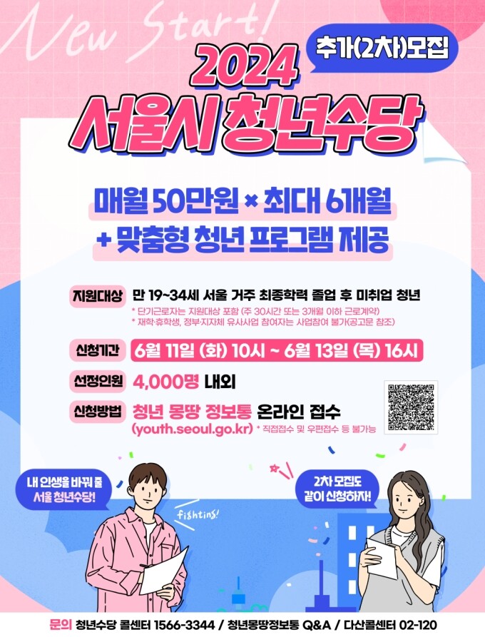 서울시는 오는 13일 오후 4시까지 취업을 준비하는 청년들이 생활비 걱정없이 진로 탐색과 취업 준비에 집중할 수 있도록 지원하는 '청년수당' 참여자 4000명을 추가로 모집한다고 11일 밝혔다.