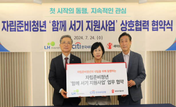 [한국건설경제뉴스=이보미 기자] 한국토지주택공사(LH)는 한국씨티은행, 세이브더칠드런과 손잡고 자립준비청년의 안정적 첫 출발을 지원하는 '함께서비 지원사업'을 추진한다고 26일 밝혔다.