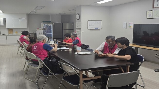 | ▲강동리엔파크 9단지 경로당 어르신들이 어디나지원단 강사들로부터 스마트 주거서비스 활용법 교육을 받는 모습. 사진=SH공사 제공 |