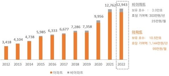 | ▲SH공사 보유 공공임대주택의 주거비 경감 기여액(단위: 억원). 그래프=SH공사 제공 |