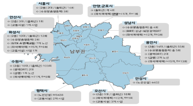 지자체 수요와 대중교통 이용객 목적지 분석을 토대로 광역버스 추가 노선 신설과 증차도 추진한다. 교통사각지대에는 광역 수요응답형 버스(DRT)를 도입하는 등 수요 맞춤형 공급을 확대한다는 방침이다.