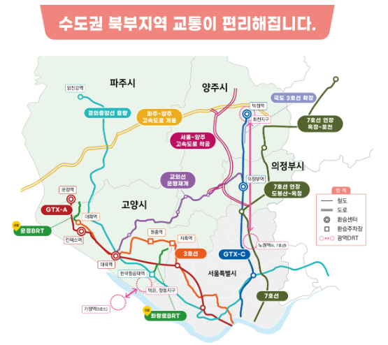 수도권 북부지역의 서울행 광역버스와 건선버스급행체계(BRT) 등 대충 교통편이 대거 확충된다. 또 수도권광역급행철도(GTX)-A노선 개통에 맞춰 철도 환승체계도 강화된다.