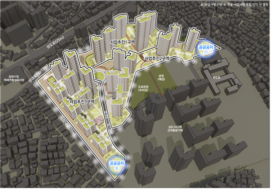 또한, 인근 주거지와 맞닿은 구역에는 상·하부에 공원과 주차장을 설치하는 입체복합시설을 조성하고, 경로당과 어린이집 등 생활밀착형 복지시설을 함께 배치하는 한편, 공공공지를 신설하여 미래 주민 수요를 반영한 기반시설 확충이 가능하도록 계획했다.