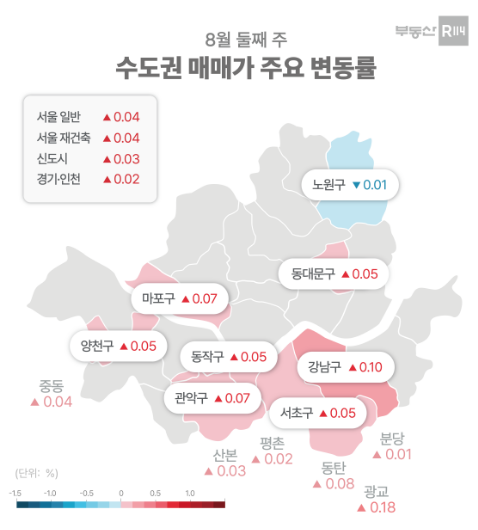 | ▲8월 둘째 주 수도권 매매가 주요 변동률 / 제공=부동산r114 |
