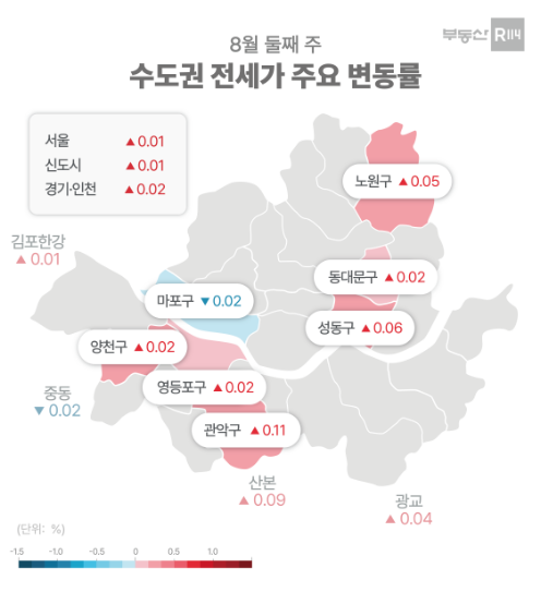 | ▲8월 둘째 주 수도권 전세가 주요 변동률 / 제공=부동산r114 |