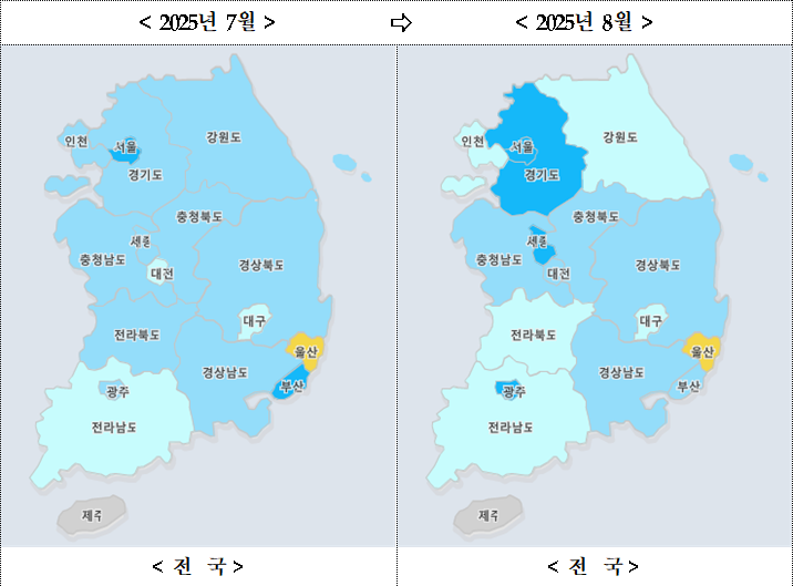 [한국건설경제뉴스=박동혁 기자] 6·27 부동산 대책 시행 두 달여 만에 전국 부동산 시장의 소비심리가 다소 회복세를 보이고 있다. 다만 수도권과 비수도권 간 온도 차가 뚜렷하게 드러나며 국면 전환에는 이르지 못한 모습이다.