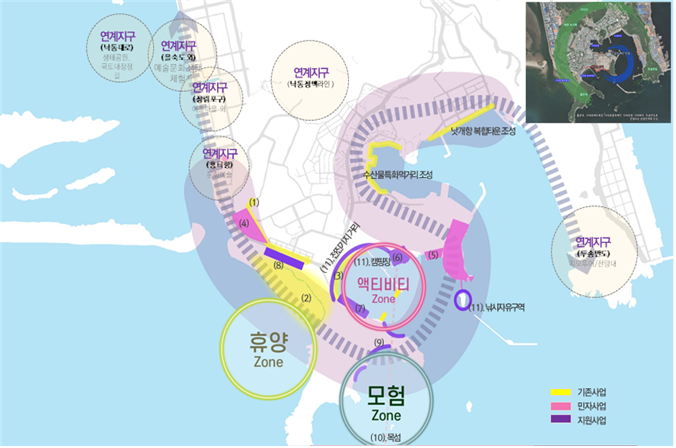'복합 해양레저관광도시 조성' 사업은 해양관광자원을 바탕으로, 관광자원 개발·보전과 민간투자를 연계해 기존 지역에 해양레저관광 기반 시설(인프라)과 콘텐츠를 결합한 '복합 해양레저관광도시'를 조성하는 대규모 프로젝트 사업이다.