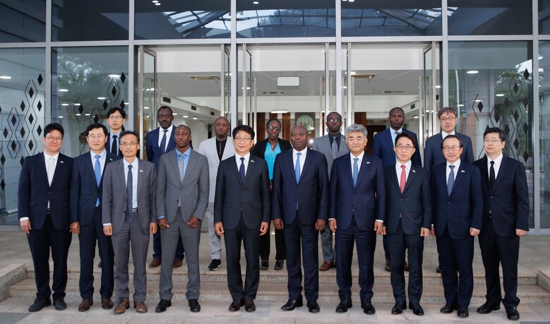 | ▲르완다에 방문한 박상우 국토교통부 장관(앞줄 왼쪽에서 다섯번째) 모습. 사진=국토부 제공 |