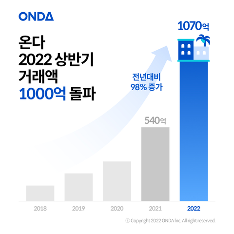 호스피탈리티 테크 기업 온다(ONDA)가 2022년 상반기에도 폭발적인 성장을 이어갔다.