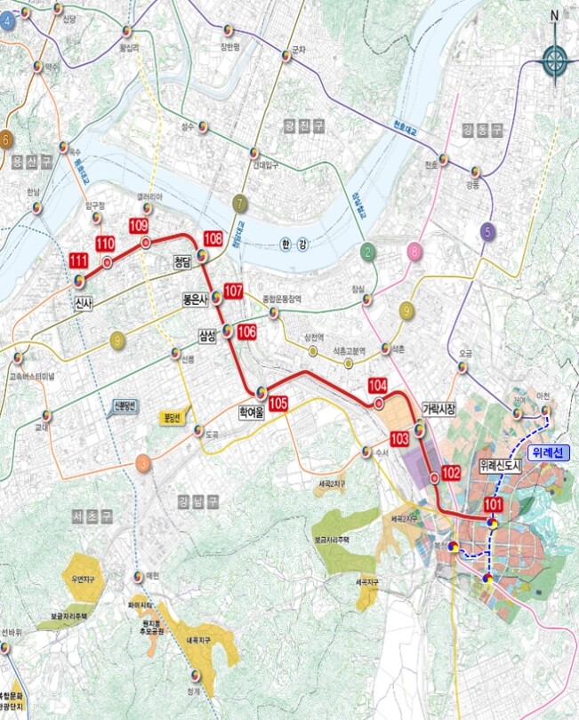 | ▲위례신사선 도시철도 노선도. 사진=서울시 제공 |