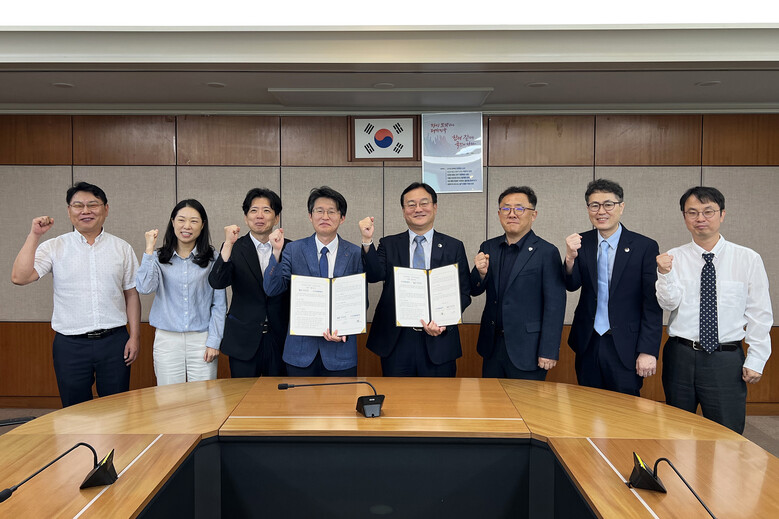 | ▲코오롱글로벌-한국산업기술시험원 업무협약식 단체사진<사진제공=코오롱글로벌> |