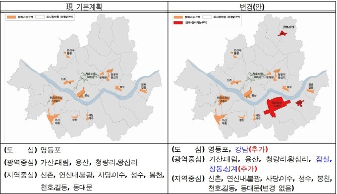 서울시는 2030 도시·주거환경정비 기본계획(도시정비형 재개발 부문)을 변경해 창동·상계 광역중심(동북권)과 강남 도심·잠실 광역중심(동남권)을 재개발사업 대상에 추가했다고 13일 밝혔다.