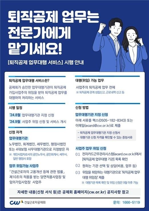 한편, 퇴직공제 업무대행 서비스에 대한 자세한 내용은 건설근로자공제회 홈페이지 공지사항에서 확인할 수 있다.