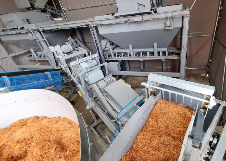 진동 분산시스템: 정량 투입된 PET 섬유복합체를 균일하게 혼합해 콘크리트 내 뭉침을 방지하고, 시공 품질을 높이는 역할을 한다.