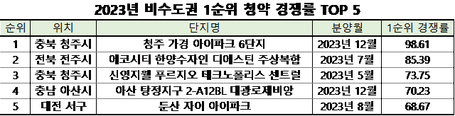 2023년 비수도권 청약경쟁률 TOP 5 단지들은 공통적으로 직주근접성을 갖춘 것으로 분석됐다.