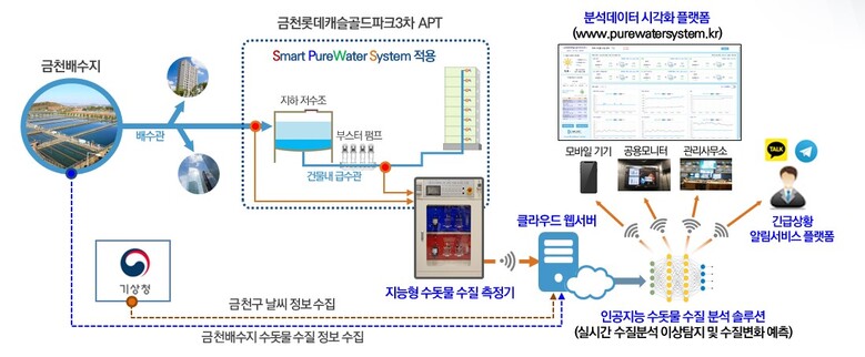 | ▲금천 롯데캐슬골드파크 3차 단지에 시범 적용 중인 ‘스마트 수돗물 수질 측정 시스템’ 개념도 |
