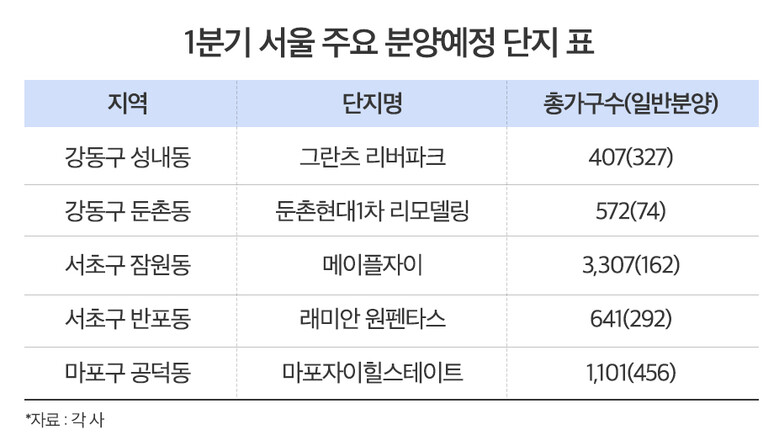 그런 가운데 업계에서는 올해 1분기 서울 분양시장이 연말부터 급락한 분양시장의 분위기를 해소하는 계기를 마련할 수 있다는 전망을 내놓고 있어 시선을 끈다. 지난해 큰 인기를 이어갔던 '강동구'를 비롯해 공급이 없었던 '서초구' 등 강남권 공급이 대거 예정돼 있어서다.