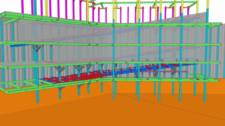 | ▲반도건설이 협력사와 공동 특허 등록한 ‘탑다운 램프슬래브 구축장치 및 이를 이용한 시공방법’ 모델링<사진제공=반도건설> |