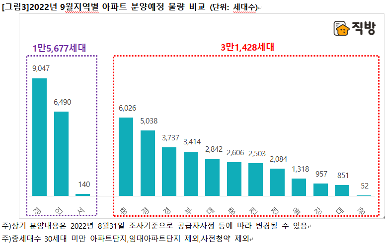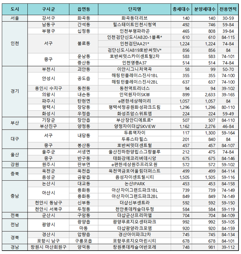 주)상기 분양내용은 2022년 8월31일 조사기준으로 공급자사정 등에 따라 변경될 수 있음 주)총세대수 30세대 미만 아파트단지,임대아파트단지 제외 주) *은 기(旣)사전청약 아파트의 본청약 단지