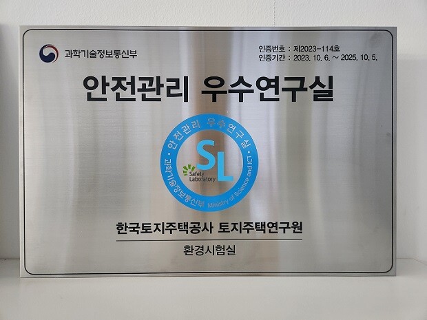 한국토지주택공사(LH)는 토지주택연구원 산하 품질시험인정센터 환경시험실에 대해 과학기술정보통신부 주관 '안전관리 우수 연구실' 정부 인증을 획득했다고 7일 밝혔다.