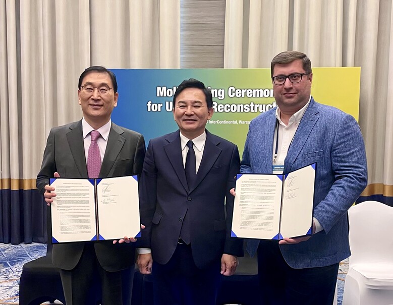 한편, 협약식과 함께 마련된 기업인 간담회에는 해외건설협회, 현대건설, 삼성물산, 현대로템, 한국수출입은행, 한국토지주택공사, 한국수자원공사, 네이버 등 우크라이나 재건 관련 대표기업과 기관이 참석해 향후 정책지원 및 협력방안에 대한 논의를 진행했다.