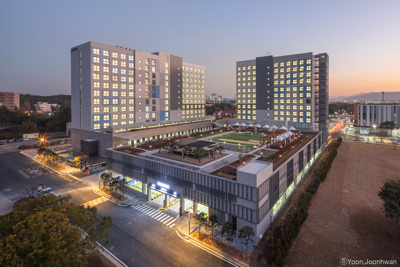 설계단계부터 BIM(건설정보모델링) 기반의 제작과 조립 공정을 고려한 최적화 설계(DfMA)를 도입했다. 디지털 목업(Mock-up)과 가상공간에서 모듈러 유닛 제작, 운송, 설치 등을 사전에 시뮬레이션해 오류를 미리 제거하고 정확도를 높이는 한편, 제작단계에선 3D 스캐너 검측으로 제작 오차를 줄였다.