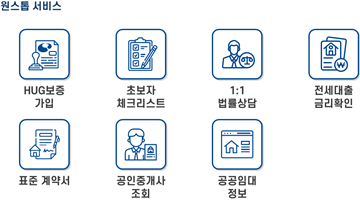 이외에도, 전세계약 초심자를 위한 체크리스트, 표준계약서 양식, LH 등 공공임대주택 관련 정보, 전세대출 금리 확인, 등록임대사업자 정보 등을 확인할 수 있도록 지원한다.