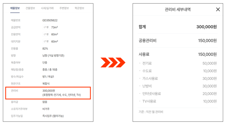 | ▲월 10만원 이상 관리비의 표시광고 표출내역 개선 예시<자료제공=부동산R114> |