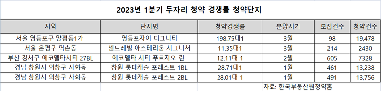 지방에서도 학세권 단지의 청약경쟁률은 빛났다. 2월 분양한 부산 강서구 에코델타시티 27BL ‘에코델타 시티 푸르지오 린’이 12.11대 1의 경쟁률을 기록했다. 단지는 바로 인근에 초·중·고 모든 학군의 예정부지가 위치한 점이 높은 평가를 받았다. 1월 분양한 경남 창원시 의창구 사화동 ‘창원 롯데캐슬 포레스트’ 1BL·2BL이 각각 28.71대 1, 28.01대 1의 청약경쟁률을 기록했다. 인근에 명곡초, 명서중, 중앙중, 문성고, 창원고, 경일고, 경일여고 등 다양한 학군을 형성하고 있는 학세권 단지다.