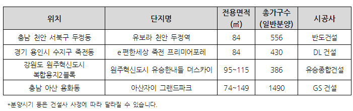 실제로 대전 유성구 학하동에 들어서는 1754가구 규모 '포레나 대전학하'가 최근 미분양 물량을 모두 털어냈다. 지난 3월에 광주시 서구 마륵공원에서 분양에 들어간 '위파크 마륵공원'도 완판을 기록했다.