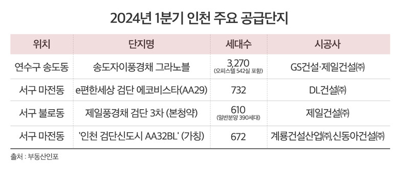 이런 가운데 2024년 1분기 인천에는 신도시 중심으로 신규 아파트 공급이 예정돼 있다.