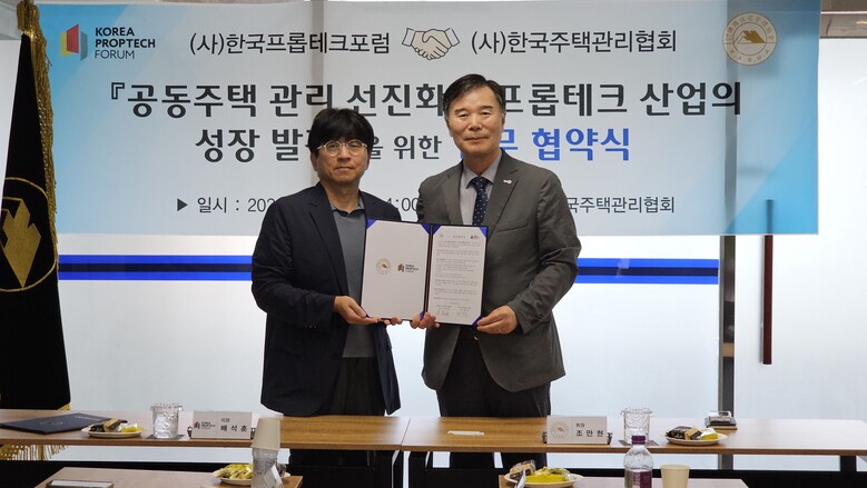 한국프롭테크포럼은 한국주택관리협회와 건축물의 관리 선진화 및 프롭테크 산업의 성장 발전을 위한 업무협약을 체결했다고 26일 밝혔다.
