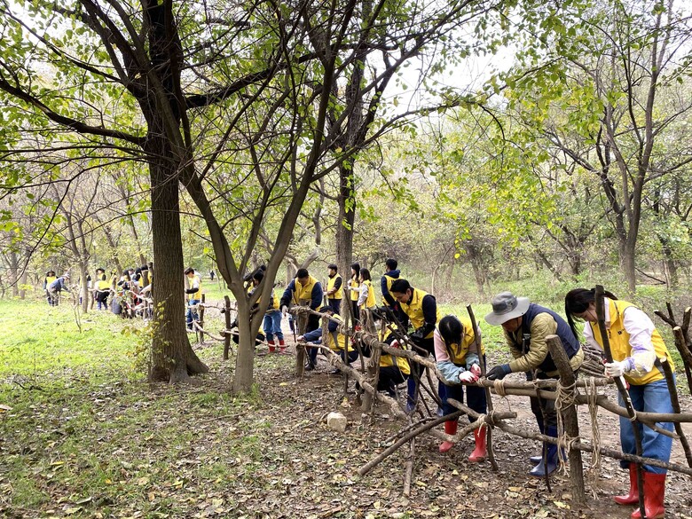 | ▲DL이앤씨 임직원들이 서울 여의도 여의샛강생태공원을 찾아 수달 서식처 보호 활동을 진행하고 있다.<사진제공=DL이앤씨> |