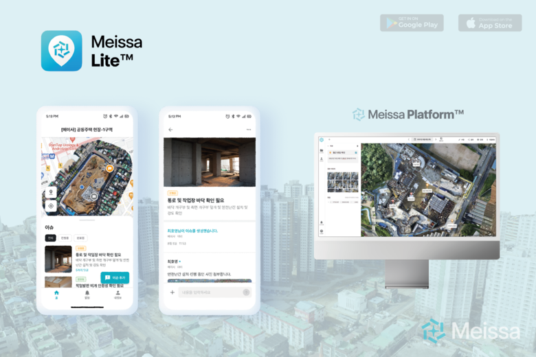 메이사는 건설 현장 관리자를 위한 애플리케이션 '메이사 라이트'를 대대적으로 리뉴얼했다. 해당 앱을 통해 현장 관리자들은 현장 이슈, 전달 사항 공유, 파일 전송 등의 협업을 드론으로 촬영된 최신 현장 지도 위에서 손쉽게 진행할 수 있게 된다.