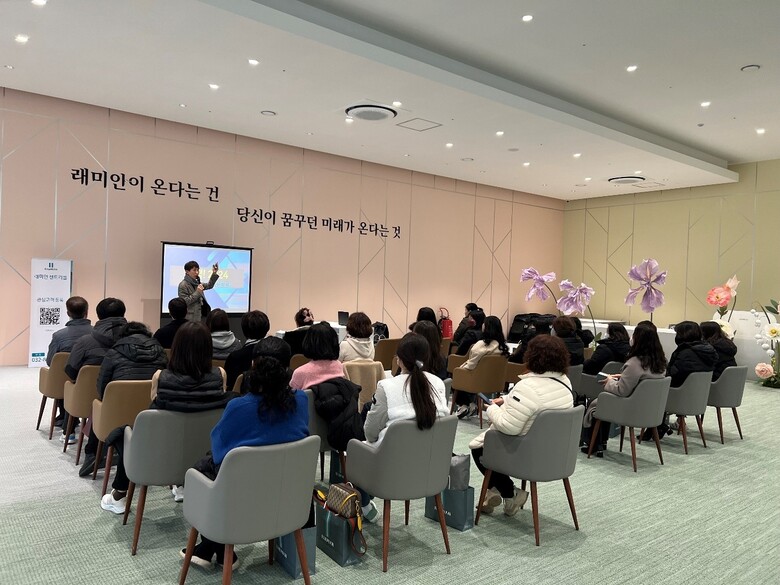 | ▲래미안 송도역 센트리폴 견본주택에서 진행된 2024년도 대학입시 설명회<사진제공=삼성물산> |