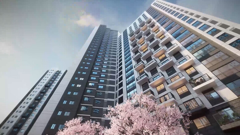 | ▲리버센SK뷰 롯데캐슬에 적용되는 오픈 발코니 모습<자료제공=더피알> |