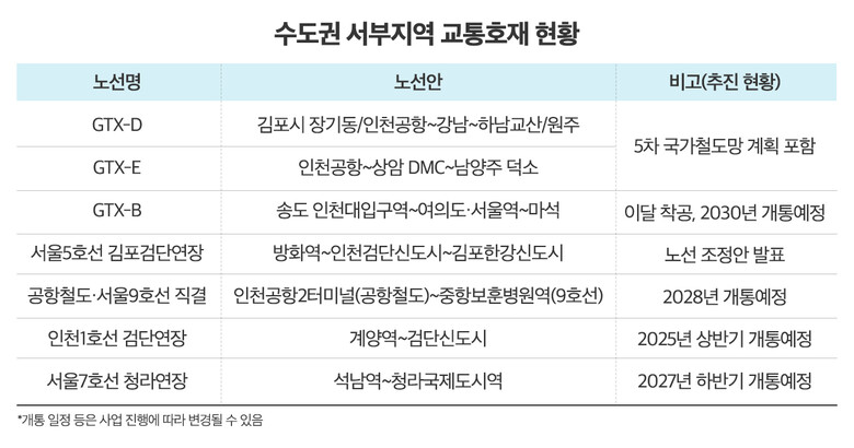 또 같은 달에는 국토부 대도시권광역교통위원회가 서울5호선을 김포시, 인천 검단신도시로 연장하는 김포검단 연장사업의 노선조정안을 내놓았고, 지난해 11월에는 서울시와 인천시가 무려 24년 만에 공항철도와 서울9호선 직결운행을 합의하고 본격 추진을 알리기도 했다.