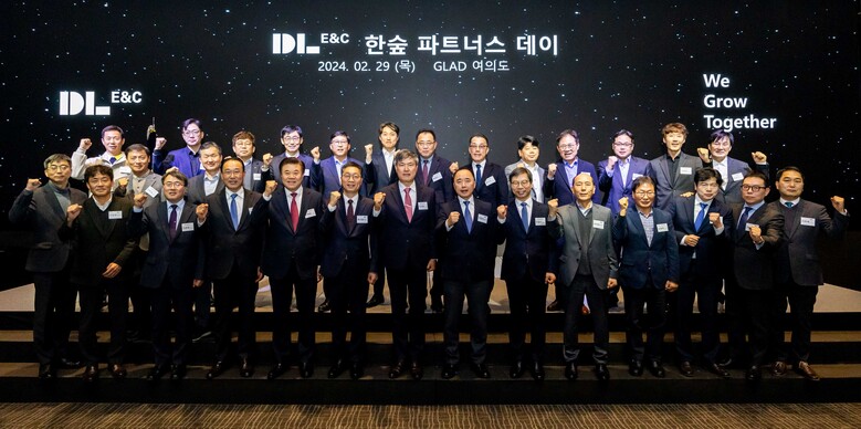 | ▲ 지난 2월 29일 서울 여의도 글래드호텔에서 열린 ‘한숲 파트너스 데이’ 행사에서 참석자들이 기념 촬영을 하고 있다.<사진제공-DL이앤씨> |