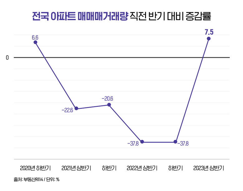 올 상반기 아파트 매매량이 2년 반 만에 증가세로 전환했다.