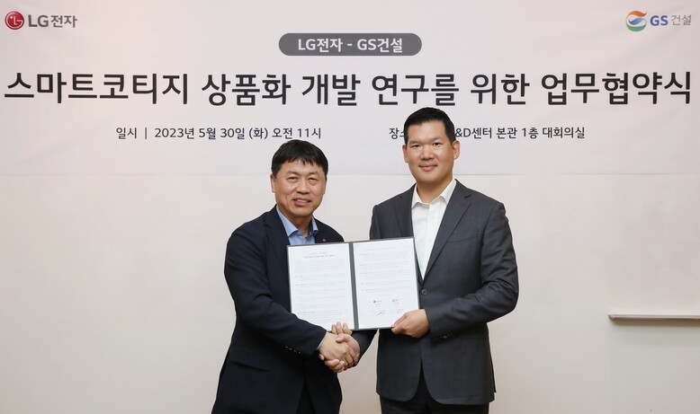 GS건설과 LG전자는 지난 30일 서울 금천구에 위치한 LG전자 가산 R&D 캠퍼스에서 GS건설 미래혁신대표 허윤홍 사장과 LG전자 H&A 사업본부장 류재철 사장 등 관계자 10여명이 참석한 가운데 ‘스마트코티지 상품화 개발’을 위한 업무협약을 체결했다고 밝혔다.