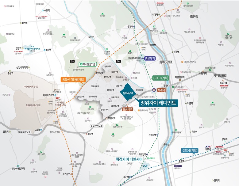 장위자이 레디언트는 주거 여건이 뛰어나다. 서울 지하철 6호선 돌곶이역을 도보로 이용할 수 있고, 한천로, 북부간선도로 등을 통한 단지 진·출입도 용이하다. 가까운 동부간선도로, 내부순환로 등을 이용해 수도권 각지로 편리하게 이동할 수 있고, 내년 착공이 예정된 동부간선도로 지하화 사업도 진행 중이다. 인근에 GTX-C 노선, 동북선 등도 계획돼 있어 교통 여건은 더욱 우수해질 전망이다.