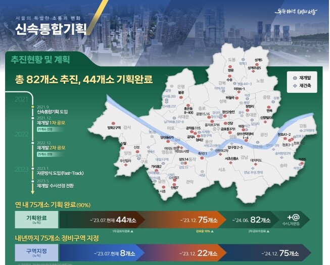 서울시 핵심 정비사업 지원제도인 '신속통합기획'이 시행 2년도 안돼서 44개 구역 6만여 가구를 대상지로 확정했다.
