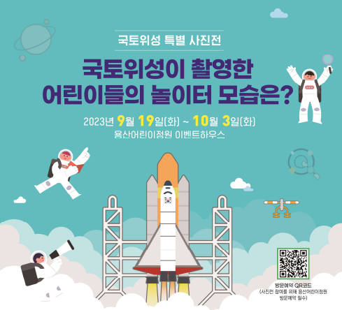 국토부가 주최하고 국토지리정보원, 공간정보산업진흥원이 주관하는 이번 사진전은 '국토위성이 촬영한 어린이들의 놀이터 모습은'이라는 주제로 국토위성 1호가 2021년 10월부터 최근까지 국내외 주요 놀이공원, 축구 경기장, 유적지 등 어린이들을 위한 공간을 촬영한 총 20여점의 작품과 국토위성 모형, 우주 관련 벽화가 상설 전시된다.