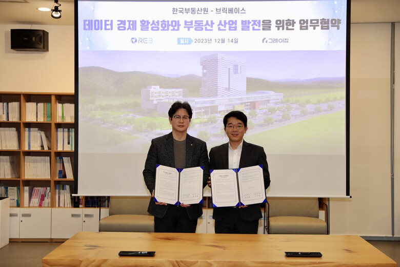 한국부동산원은 지난 14일 한국부동산원 본사에서 브릭베이스와 '데이터경제 활성화와 부동산 산업 발전을 위한 업무협약'을 체결했다고 밝혔다.